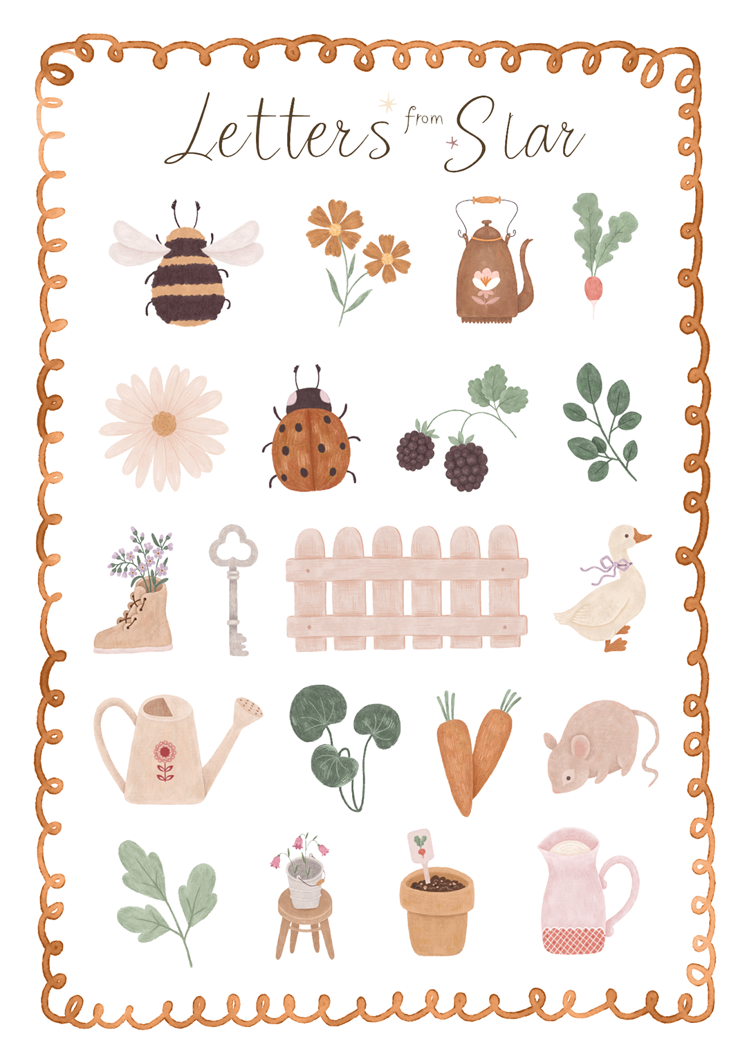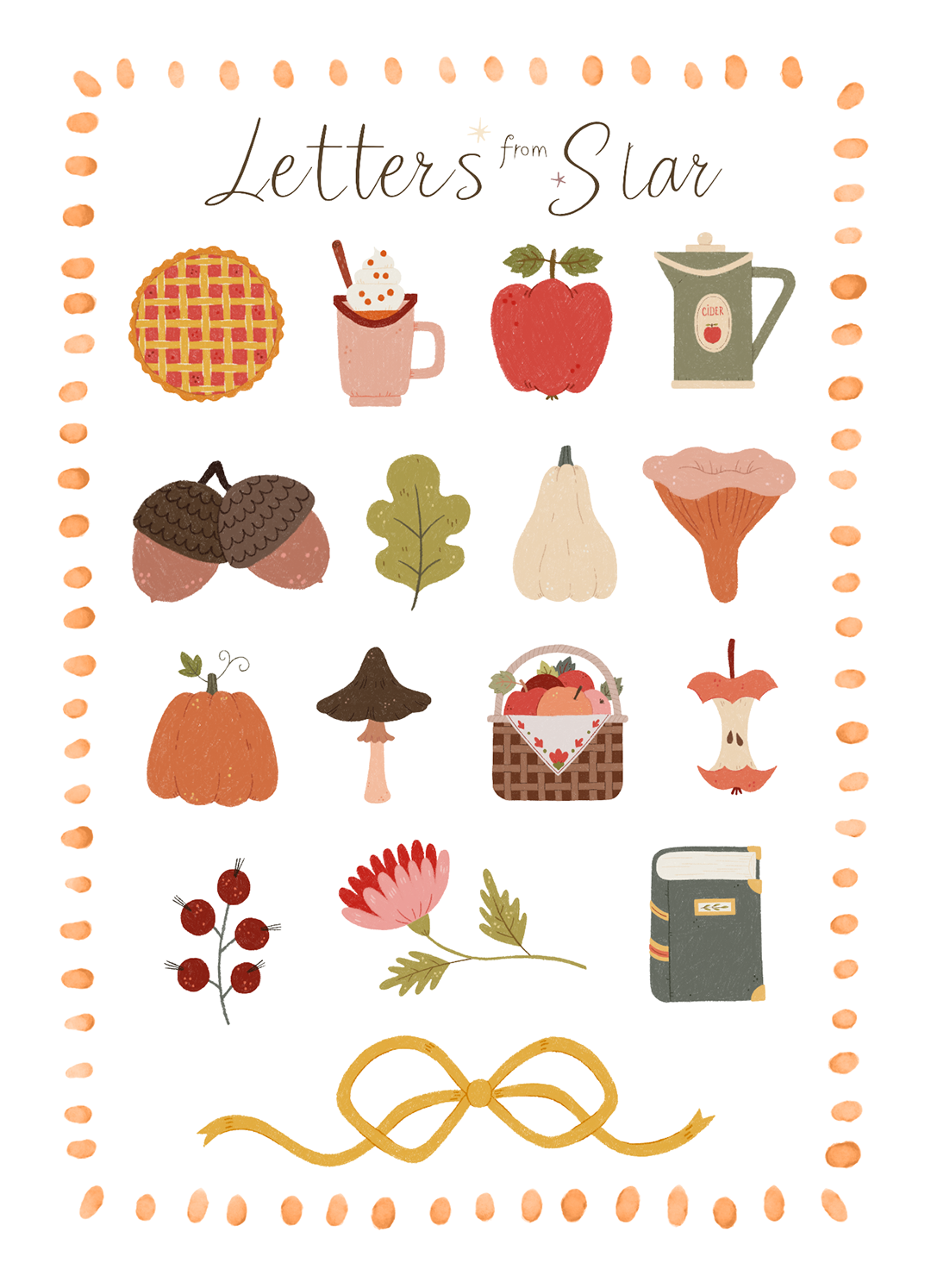 Letters from Star - Coffee Time. Bring a touch of charm to your stationery with this cozy illustrated sticker sheet, featuring artwork by Digitaliya Studio, an illustrator based in Germany. Each design captures quiet, heartwarming moments — from soft florals and warm cups of tea to woodland details and everyday treasures — all thoughtfully curated and produced by Letters from Star.