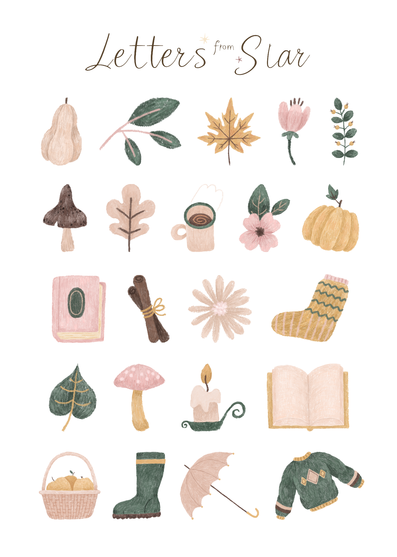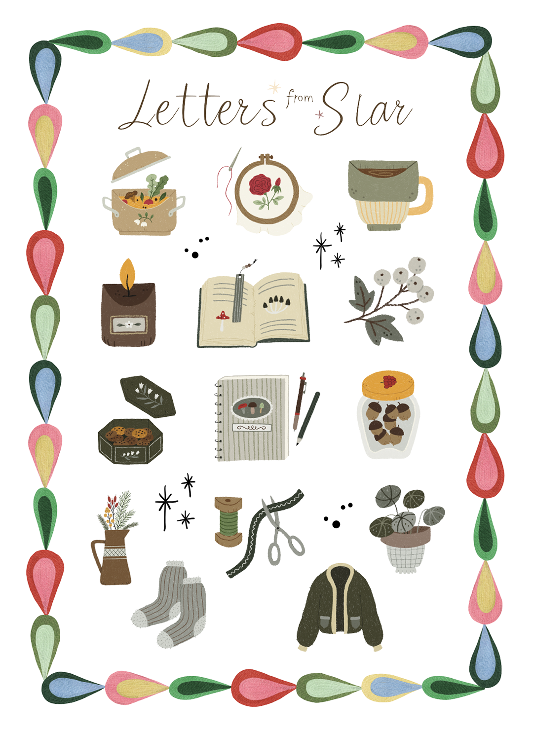 Letters from Star - Good Witch. Bring a touch of charm to your stationery with this cozy illustrated sticker sheet, featuring artwork by Digitaliya Studio, an illustrator based in Germany. Each design captures quiet, heartwarming moments — from soft florals and warm cups of tea to woodland details and everyday treasures — all thoughtfully curated and produced by Letters from Star.